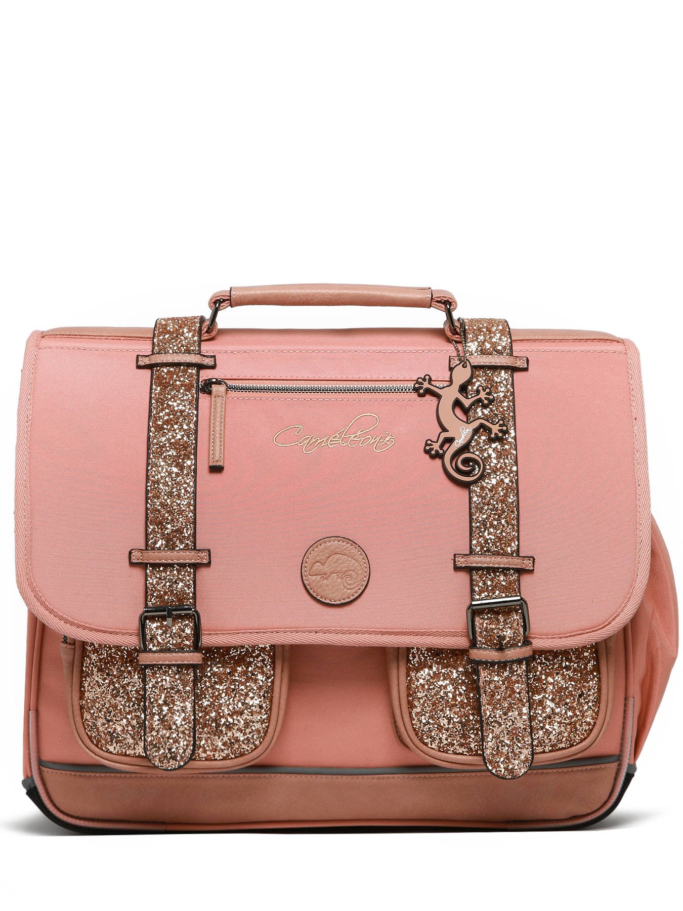 Deze schooltas uit de Vintage Fantasy collectie van het merk Caméléon heeft een breedte van 41 cm. Ideaal vanaf het 4de leerjaar! Dit model heeft een duidelijke vintage look, dankzij twee voorvakjes en de riempjes met gespen. De schooltas beschikt over drie ruime compartimenten, die schriften (24x32 cm), mappen en schoolboeken van A4 formaat kunnen bevatten. Onder de overslagflap bevindt zich ook een uniek opbergvakje, voorzien van een gratis liniaal. De twee kleine ritsvakjes vooraan zijn perfect om een snack of andere kleine spulletjes in te stoppen. Dit model beschikt ook over een naamlabel aan de achterzijde, en kan makkelijk gesloten worden dankzij een dubbel kliksysteem. Voor optimaal comfort zijn de rugzijde en schouderbanden extra gewatteerd. Dankzij enkele reflectoren kan uw kind zich ook veilig in het verkeer begeven. Vintage op z'n mooist!