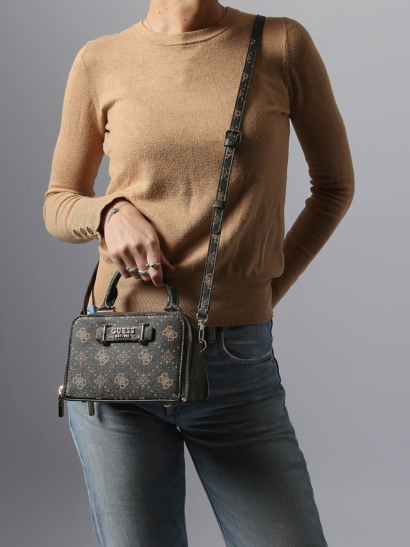 De Guess Silia handtas combineert elegantie en praktisch gebruik in een modern en functioneel ontwerp. Gemaakt van duurzaam gecoat canvas, overtuigt hij door zijn verzorgde afwerking en verfijnde stijl. De veelzijdige vorm maakt dubbel dragen mogelijk: in de hand dankzij het handvat van 8 cm, of crossbody voor een meer casual look, met een verstelbare en afneembare schouderriem die optimaal comfort biedt. De ritssluiting zorgt voor veilige opberging van je persoonlijke spullen, terwijl een voorvak en een achtervak extra praktische opbergruimte bieden. Binnenin maken vier ruime compartimenten, een ritsvak en drie vakjes voor bankkaarten het mogelijk je essentials efficiënt te organiseren. Elegant, functioneel en modern, is de Guess Silia handtas het ideale accessoire voor de actieve vrouw die dagelijks stijl en praktisch gebruik wil combineren.