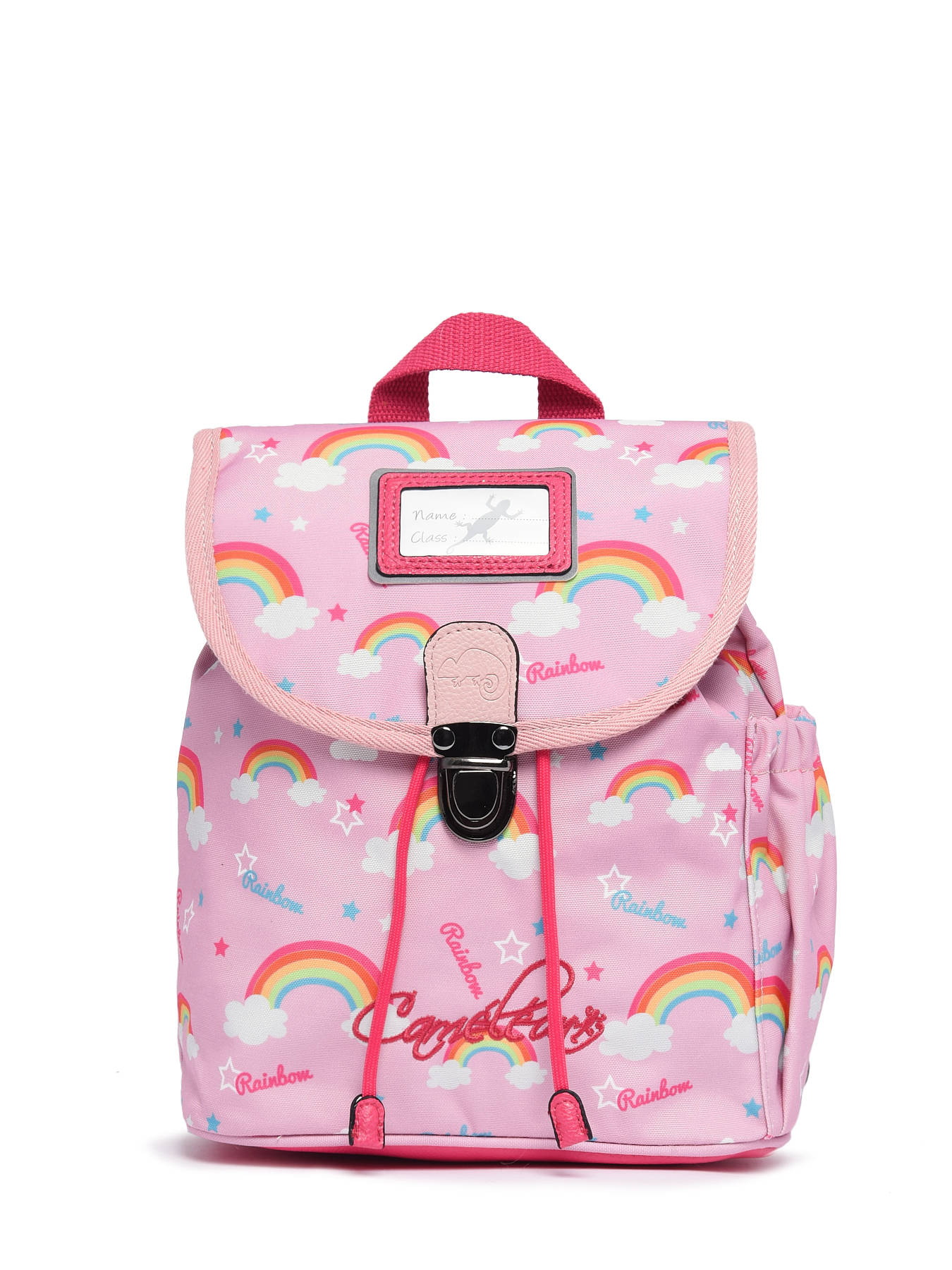 Deze schattige rugzak uit de Rétro collectie van Caméléon is perfect voor de kleuterklas. Deze rugzak kan makkelijk worden gesloten met behulp van het trekkoord, en ook de overslagflap is voorzien van een kliksluiting. De rugzak bevat een compact hoofdcompartiment met handig ritsvakje, waar uw kind zijn of haar eerste schoolspulletjes veilig in kan opbergen. Aan de zijkant is een handig elastisch vakje voorzien, waar een drinkfles in opgeborgen kan worden. De schouderbandjes en rugzijde zijn extra gewatteerd, voor een optimaal draagcomfort. Het gerecycleerde polyester is bovendien waterafstotend, waardoor dit Rétro rugzakje bestand is tegen een regenbui!